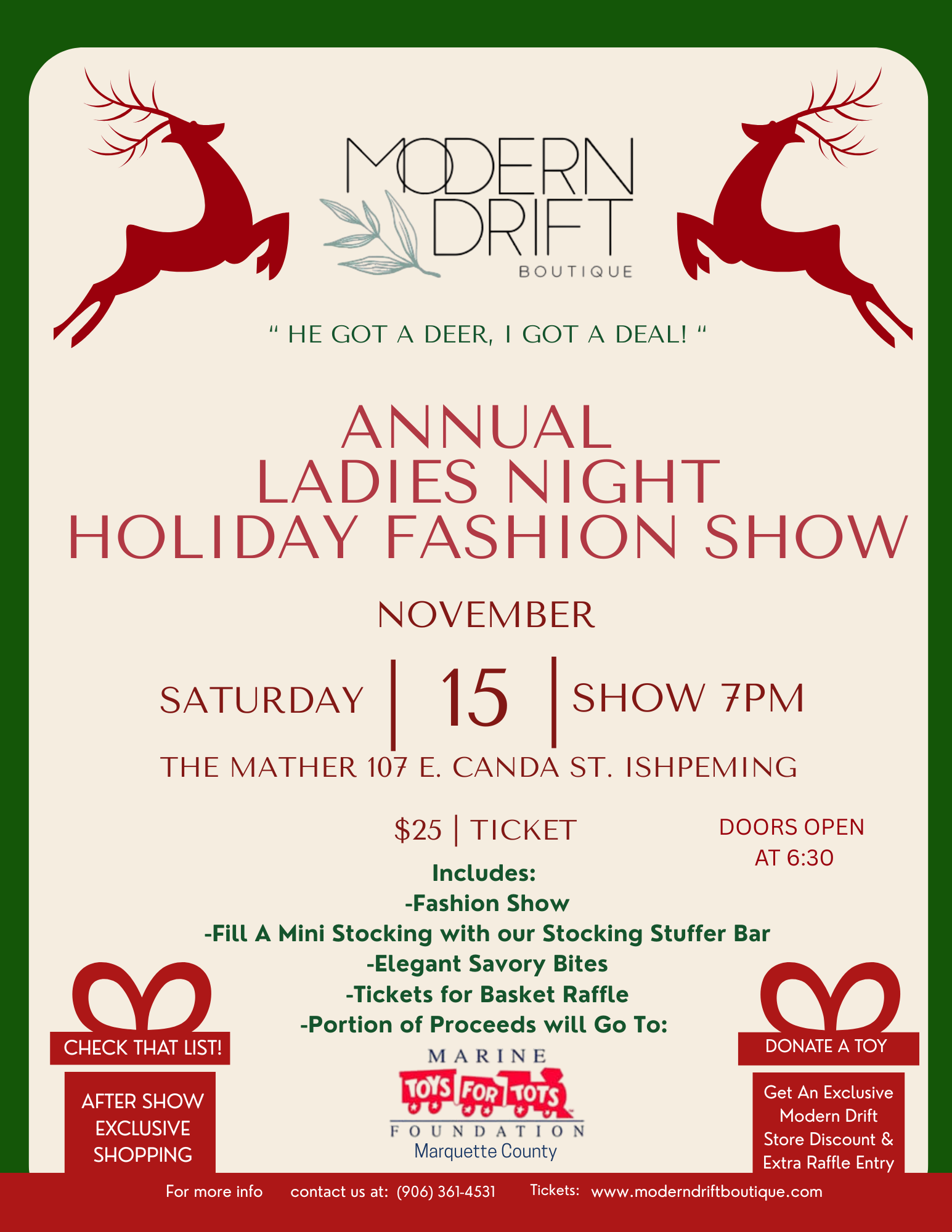 Annual Ladies Night Holiday Fashion Show (Toys For Tots Toy Drive & Fundraiser)