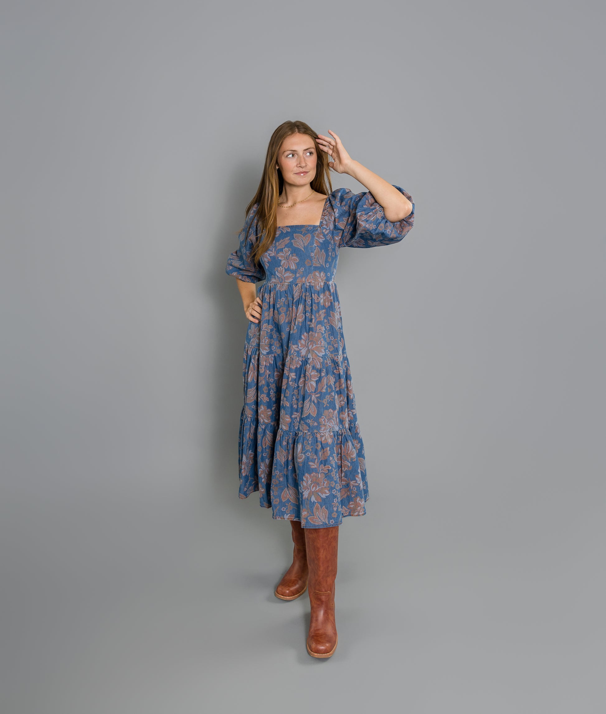 Garment Details: Puff sleeve, midi length, smocked detailing.